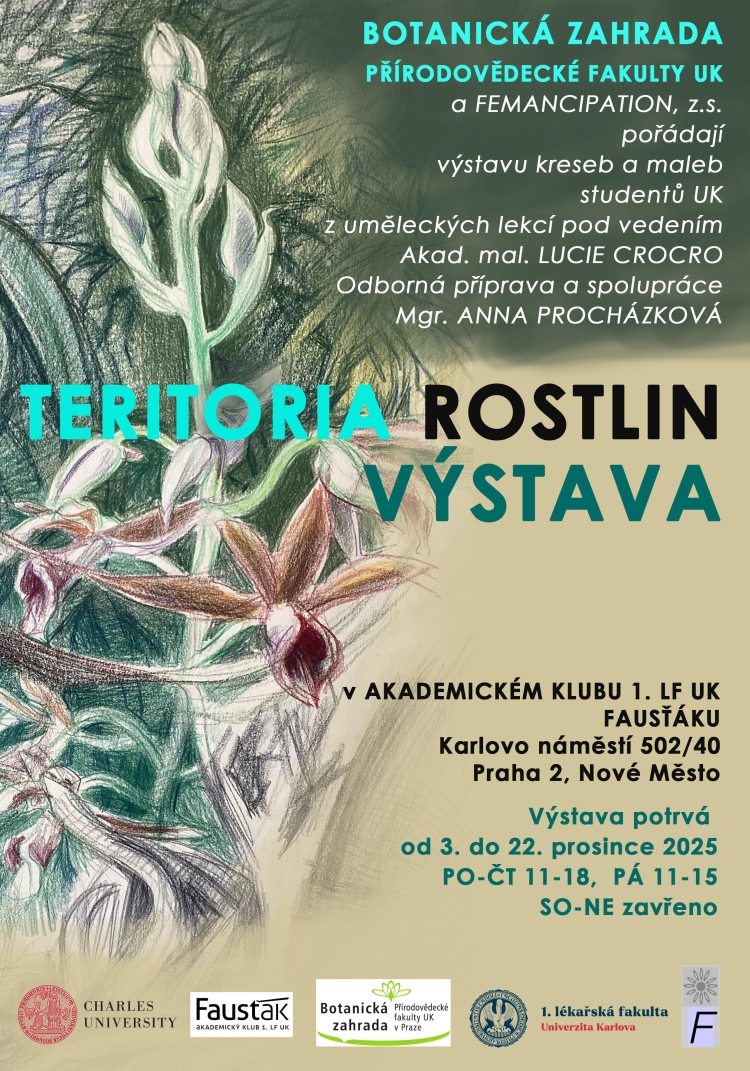 Přijďte se potěšit krásou rostlin a dozvědět se něco o území, na kterém rostou. Výstavu výtvarných prací studentů Univerzity Karlovy si můžete prohlédnout ve Faustově domě od 3. do 22. prosince.